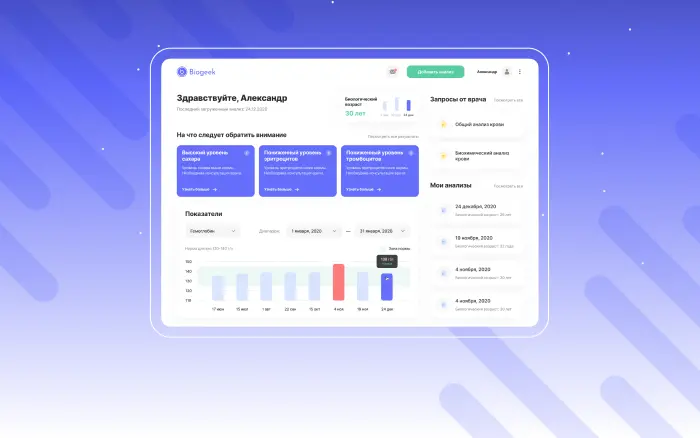 We created a web app that adapts to mobile for keeping laboratory results in one place. Later on, we also built an app that helps users to consult with a nutritionist about their health. As this is a unique and complex project we had to rely on indirect competitors' analysis and our own vision and expertise. One of the functions of the primary app is data parsing to show the lab results in the patient’s profile.